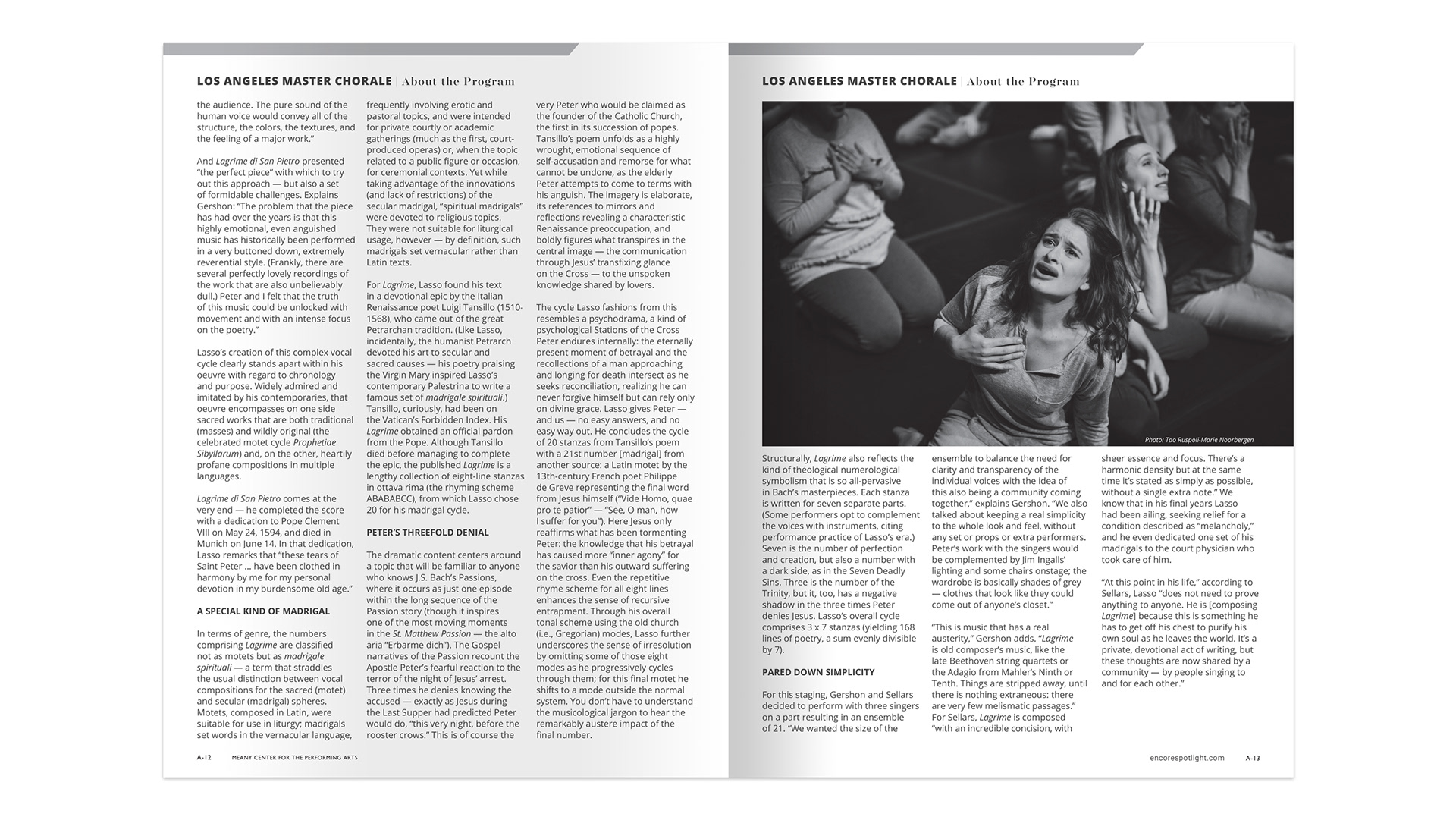 Encore publishes theatre programs for arts organizations and sells advertising in Greater Seattle and the Bay Area. We also produce festival guides, directories and magazines for non-profits and business associations.